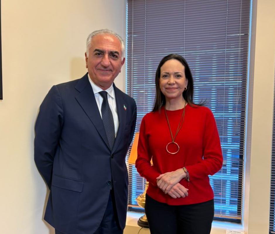 acest Raza Pahlavi care stă la masă cu cealaltă justificatoare de schimbat regim, Maria Machado (din Venezuela).